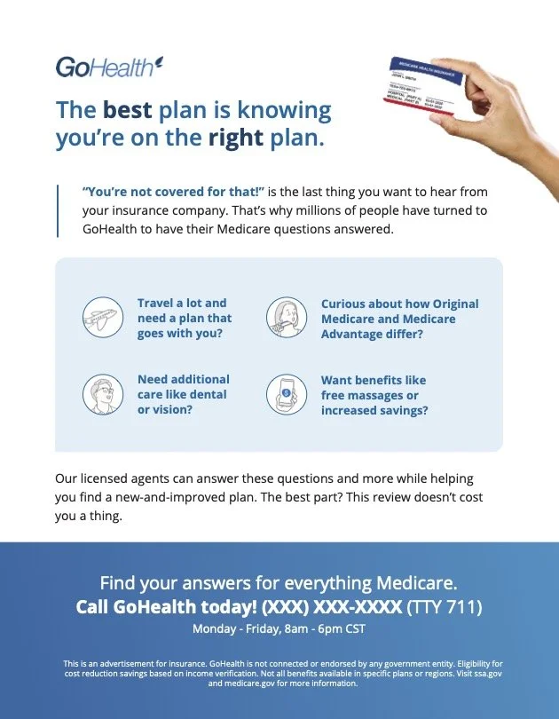 The key focus of my time at GoHealth was to write mailers reaching people 65 and older. However, how do you stand out to an audience that is over-saturated with Medicare info and other mailers? My idea: give them something they’d want to hold on to.