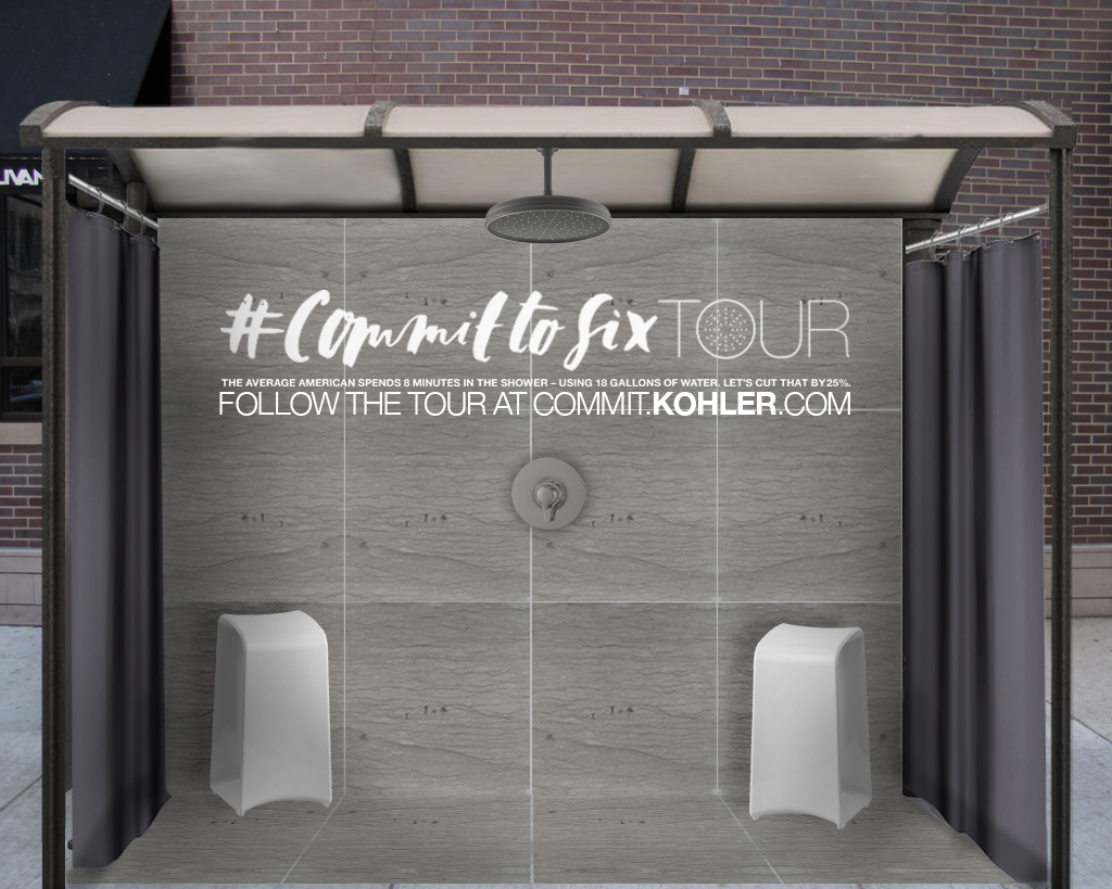 Below you will see the billboards we generated, bus shelters, swag, and a preview of live artist to playing 6 minute sets via Facebook Live at different music festivals around the country. The artists would play these 6-minute-sets in KOHLER’s portable Bathroom display sets.