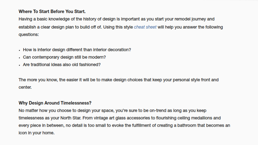 To help spark inspiration in the consumers mind I wrote KOHLER design articles of how to keep their room styles up to date. In the article, I subtly drop KOHLER links and suggestions of their products for consumers to admire and picture in their place of living.